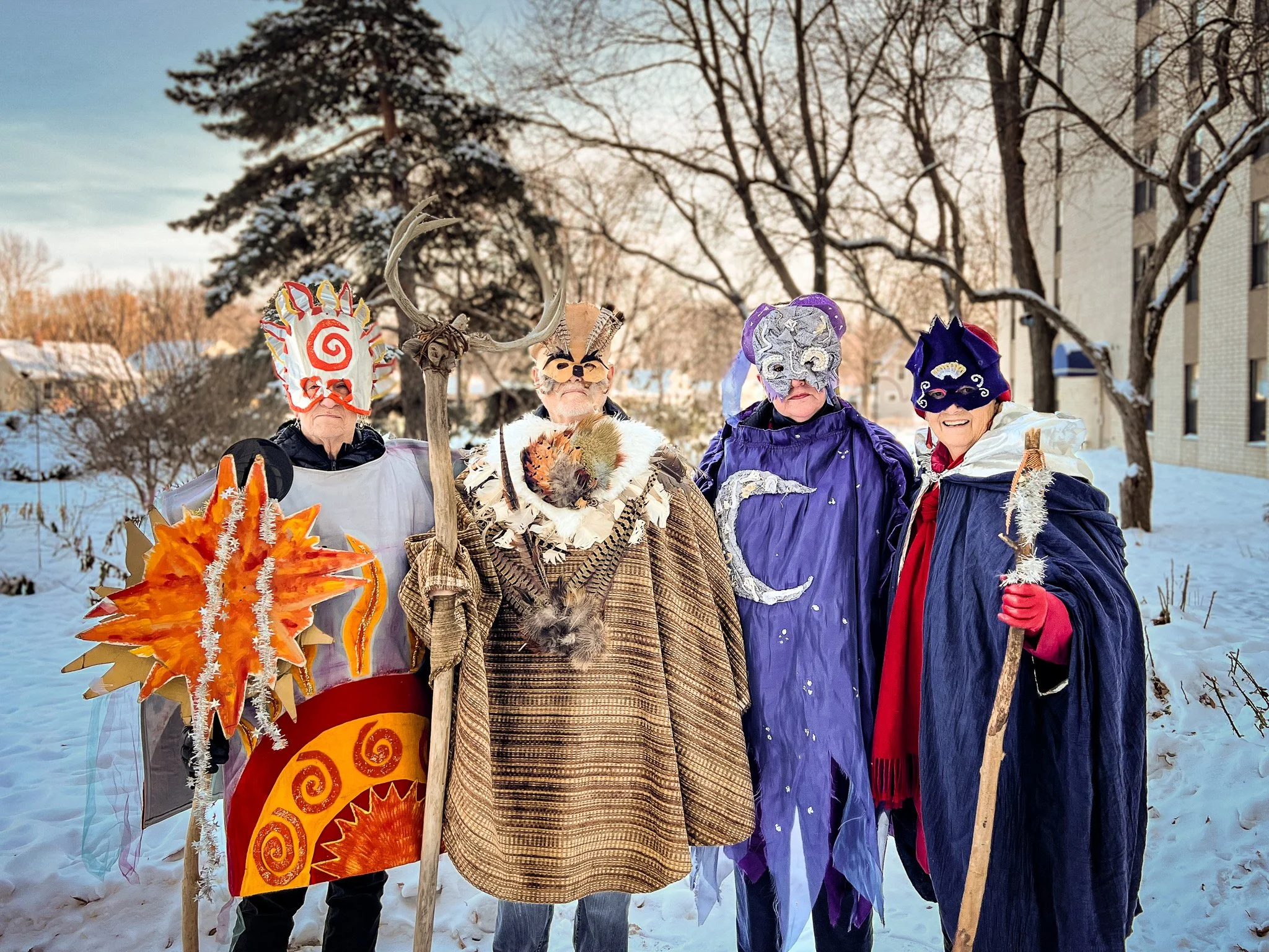 This outdoor ritual is guided by a High Priestess, a Moon Mother, a Guardian of the Forest, and a Returning Sun.