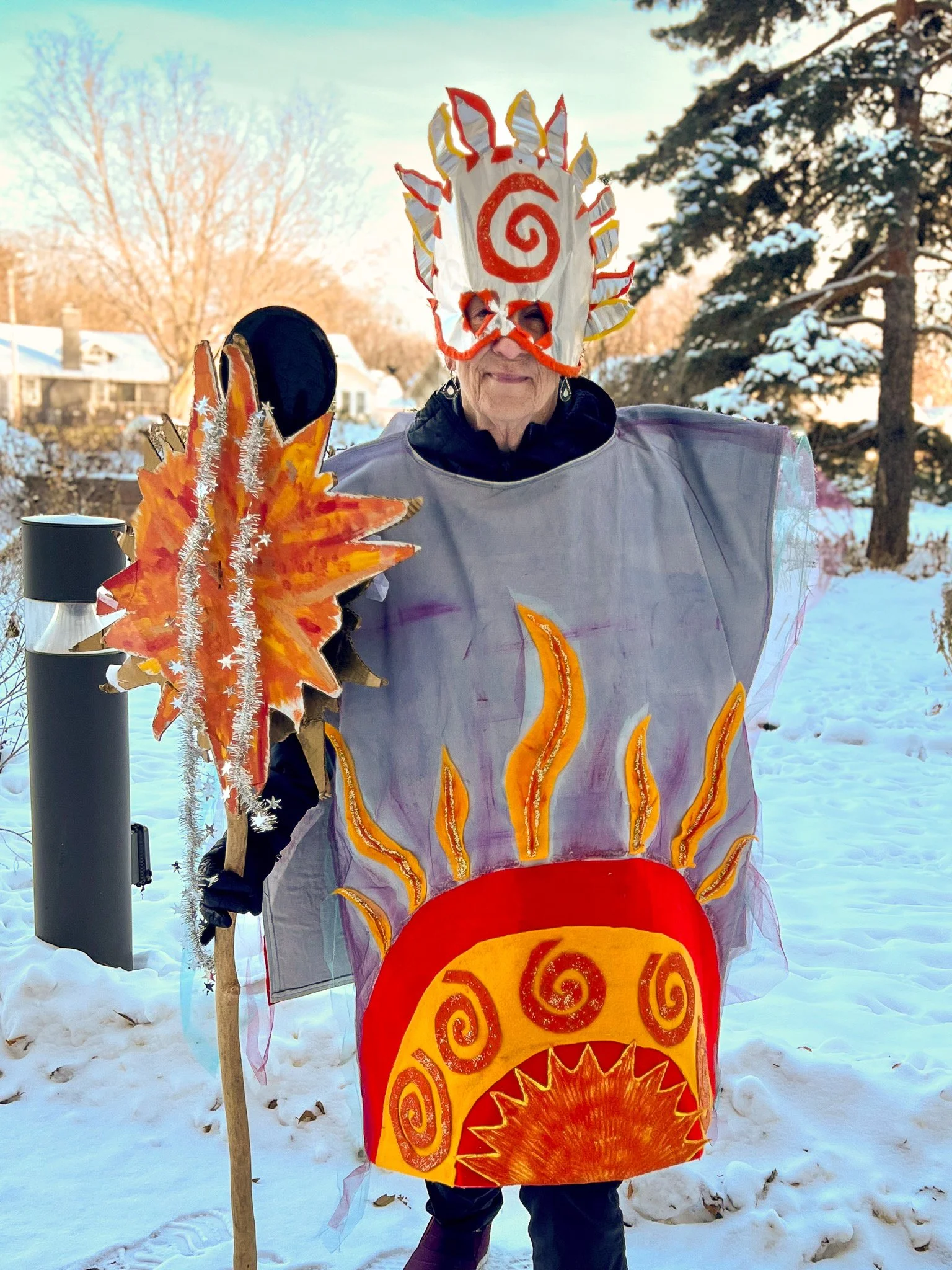 This 10-foot doll was made to launch my private practice, Rites of Change: Transitions with Courage. I danced with the doll through a large group of friends and colleagues who added accessories to the front and back of the figure.